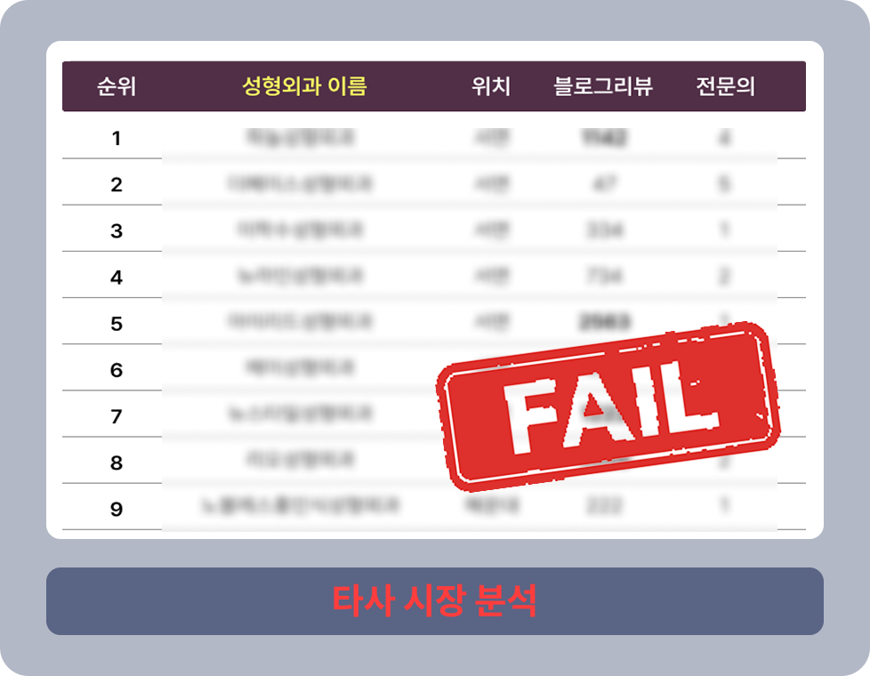 성공하는 병원의 이유가 다양한만큼, 병원이 실패하는 이유도 다양합니다. 환자를 치료하는 과정에서 올바른 처방을 위해 올바른 진단이 필수이듯 올바른 마케팅 전략 수립을 위해서는 철저한 상황 분석이 필수입니다.