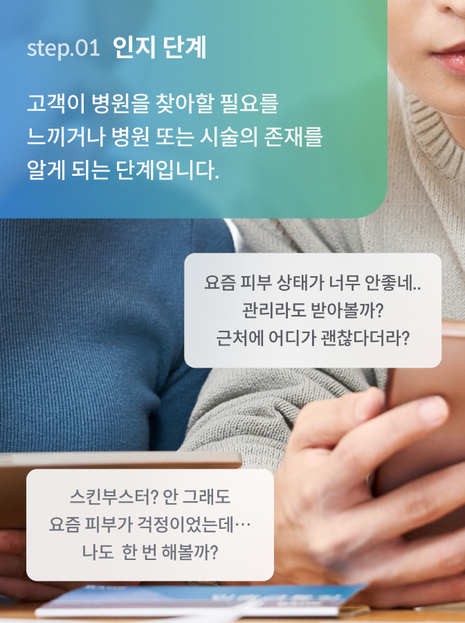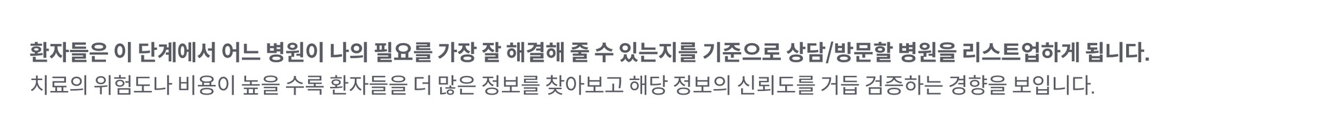 질환과 시술에 대한 정보는 물론이를 해결할 수 있는 병원에 대한 정보 탐색이깊이 있게 이루어지는 단계입니다.