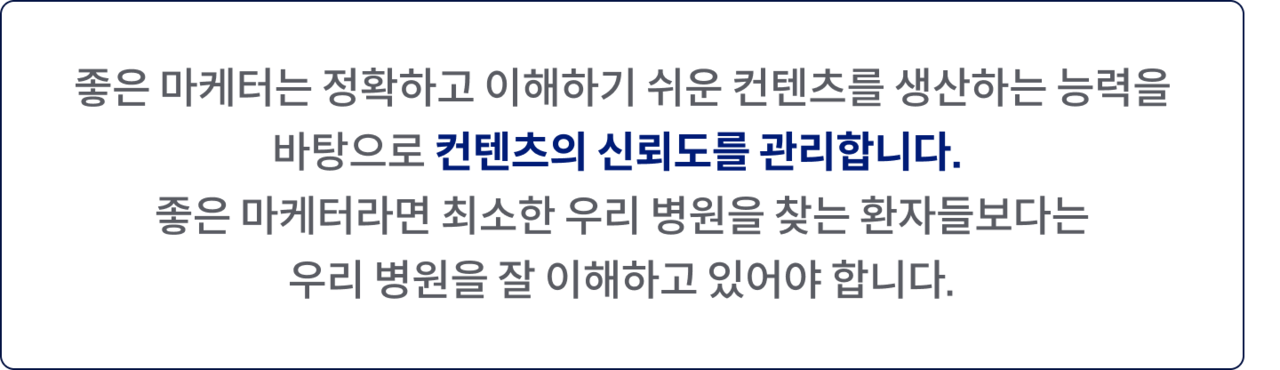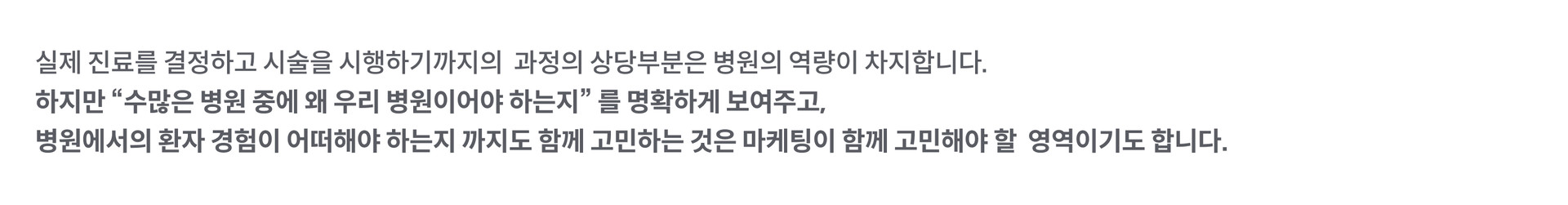 우리 병원만 할 수 있는우리 병원이 누구보다 잘 할 수 있는차별화 포인트를 찾아냅니다.