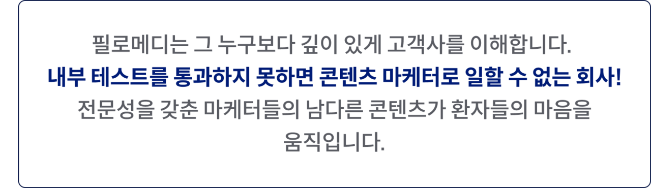 필로메디의 맨파워라면 믿으셔도 좋습니다.성장의 모든 단계를 함께설계하고 실행하는 믿음직한 파트너로필로메디는 늘 의료진의 곁에 있습니다.