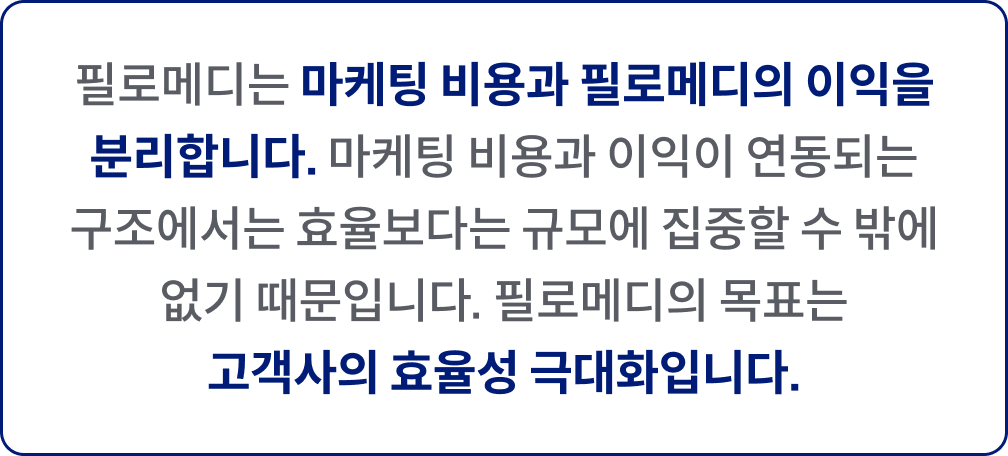 업계 누구도 흉내낼 수 없는 필로메디만의 경쟁력입니다.